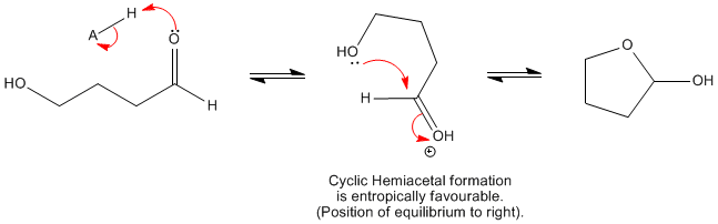 Nucleophilic addition- cyclic hemiacetal formation