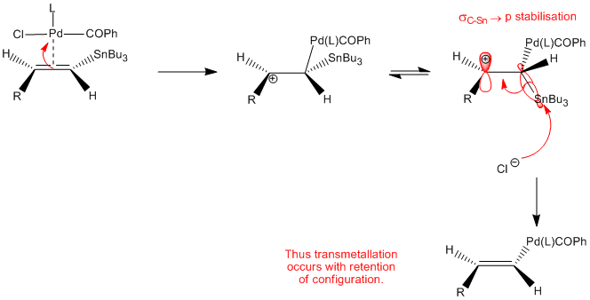 Transition metal chemistry- Palladium- Stille- retention of configuration in transmetallation step