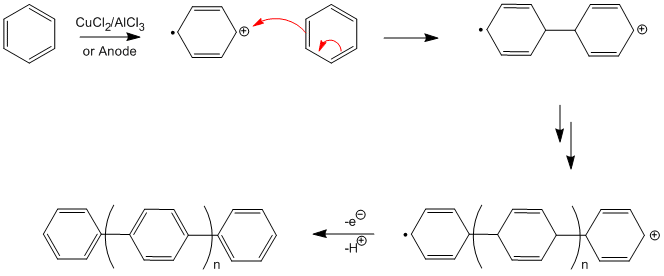 Molecular materials and polymers- Organic conductors- Polyparaphenylene- preparation from oxidation of benzene