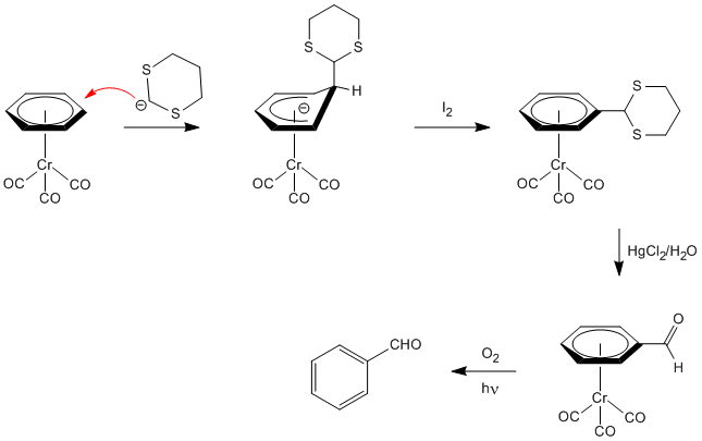 Organometallics option- Arene chromium tricarbonyl complexes- Nucleophilic aromatic addition- formation of benzaldehyde