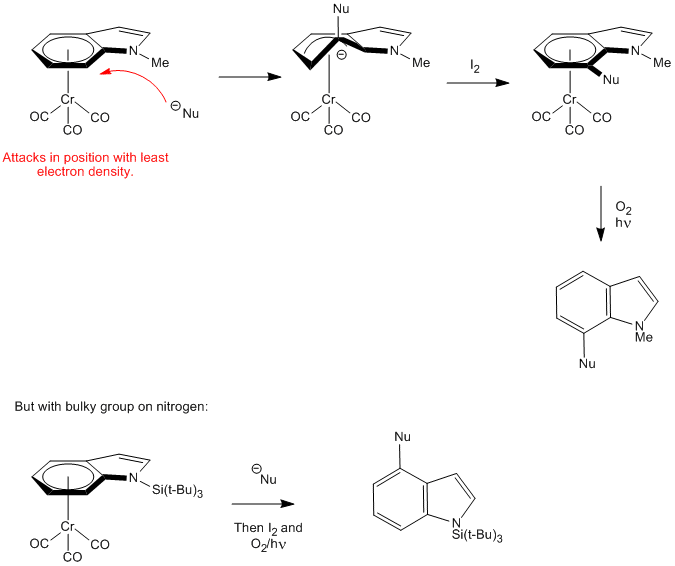 Organometallics option- Arene chromium tricarbonyl complexes- Nucleophilic aromatic addition- indol